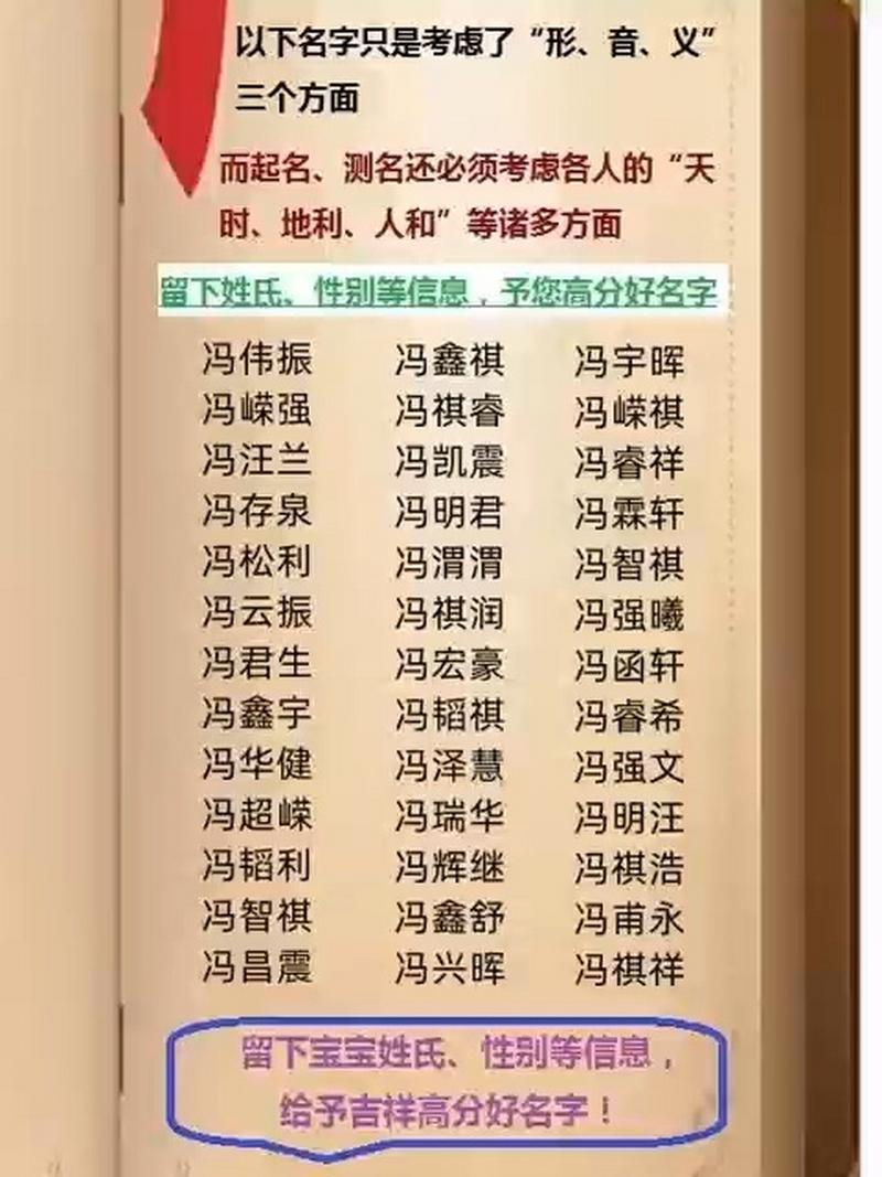 希望以上分析能够为冯姓父母提供有益的参考,帮助您为孩子起一个吉祥如意、寓意美好的名字,开启美好的人生旅程。 最终选择权在于父母,务必谨慎斟酌。