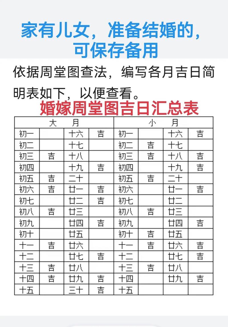 3. 避开凶日:请注意,下表中标注为凶日的日期不宜选择为结婚吉日。